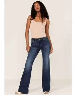 7 For All Mankind Women’s Medium Wash Mid Rise Dojo Trouser Flare Jeans