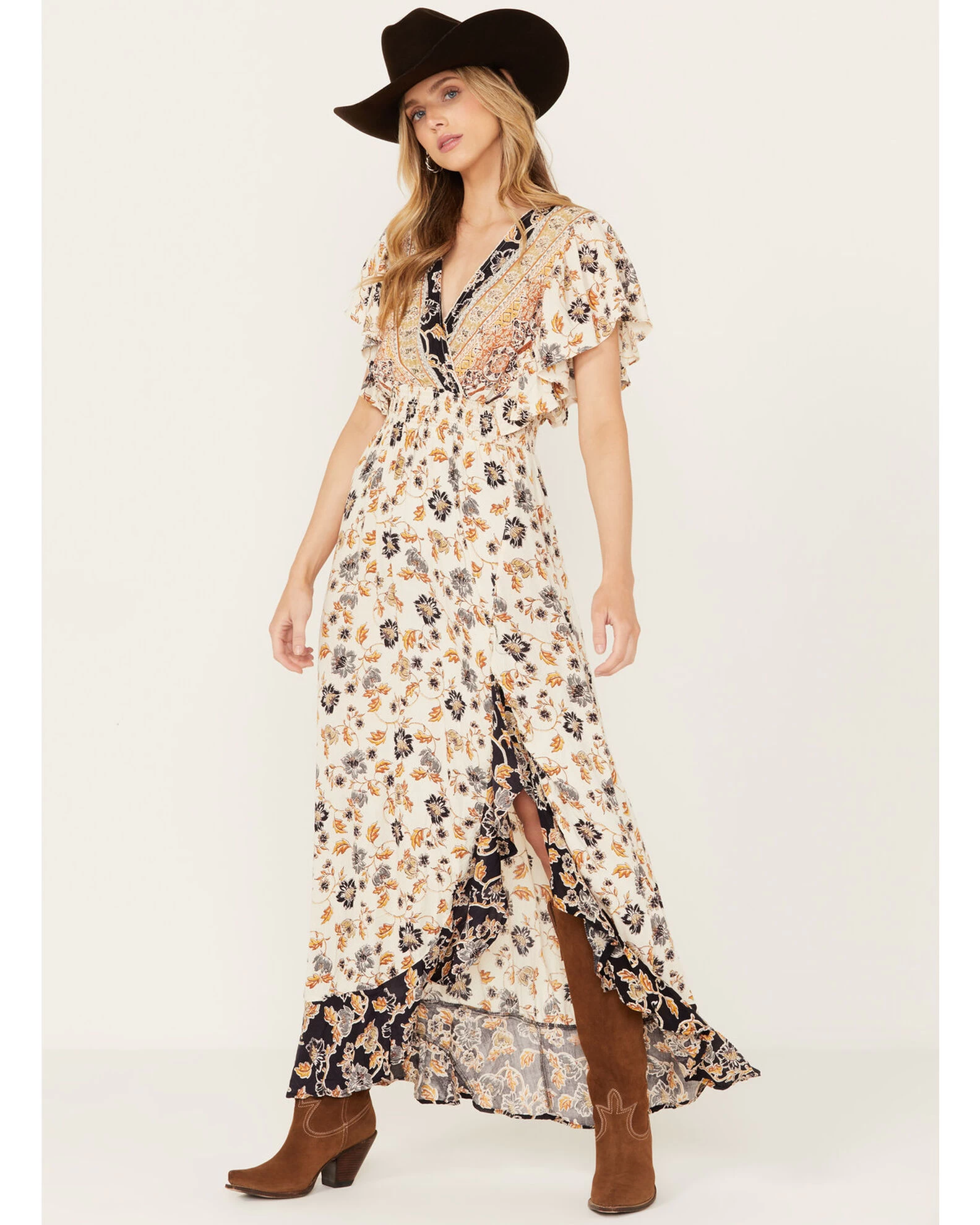 Angie Women’s Flutter Sleeve Floral Border Print Dress