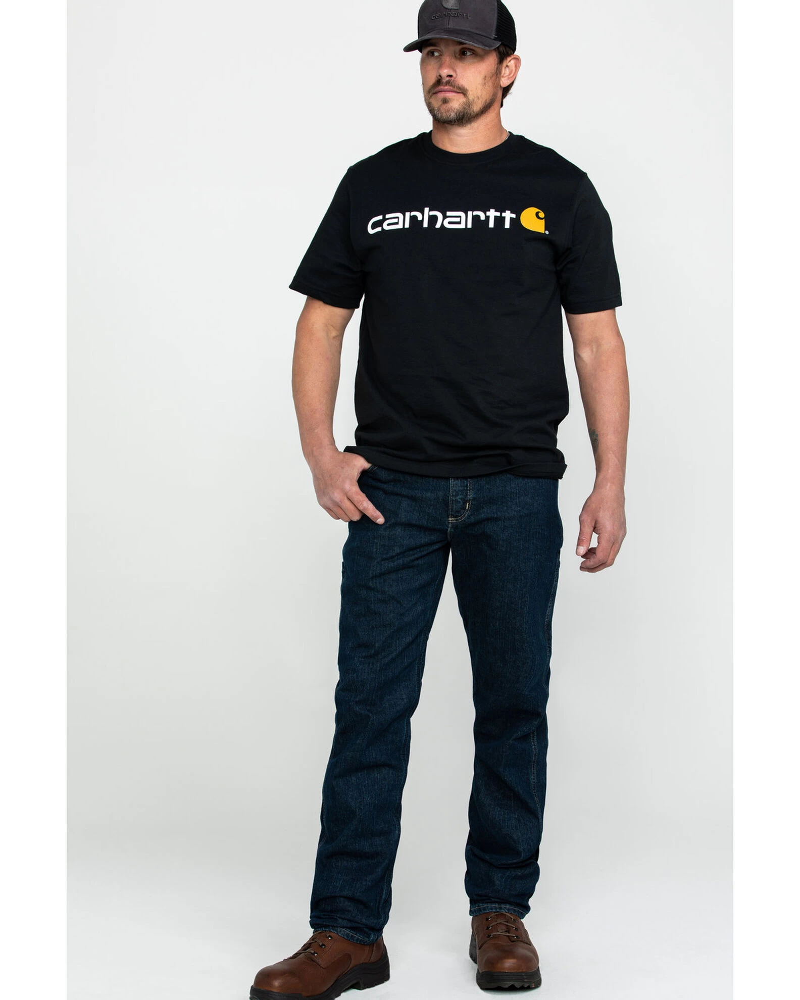 - Large Carhartt logo featured on front; smaller logo featured on back