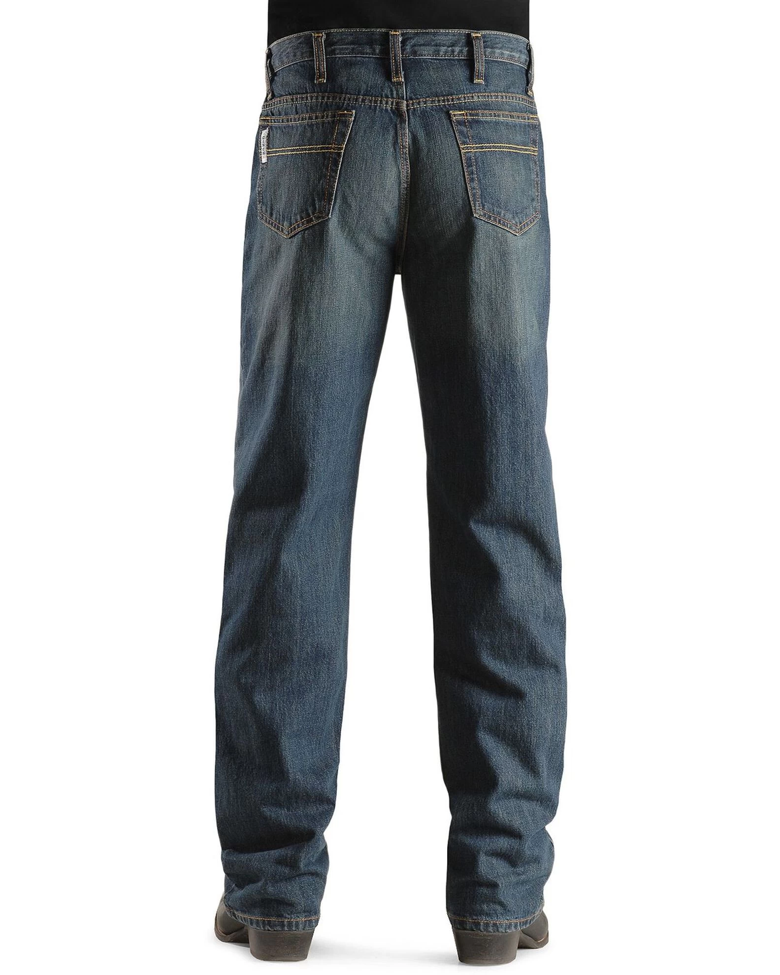 - Rodeo cowboy jean features a relaxed fit through waist, hip, thigh, and knee areas