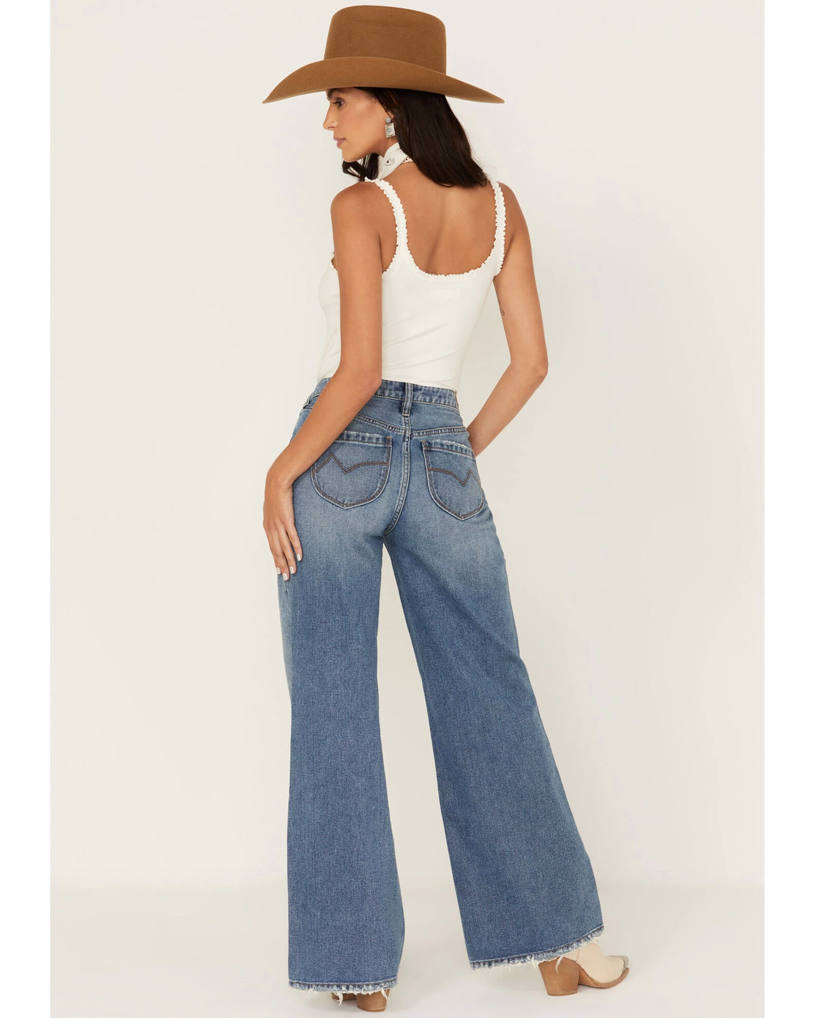 Cleo + Wolf Women’s Medium Wash High Rise Loose Distressed Jeans