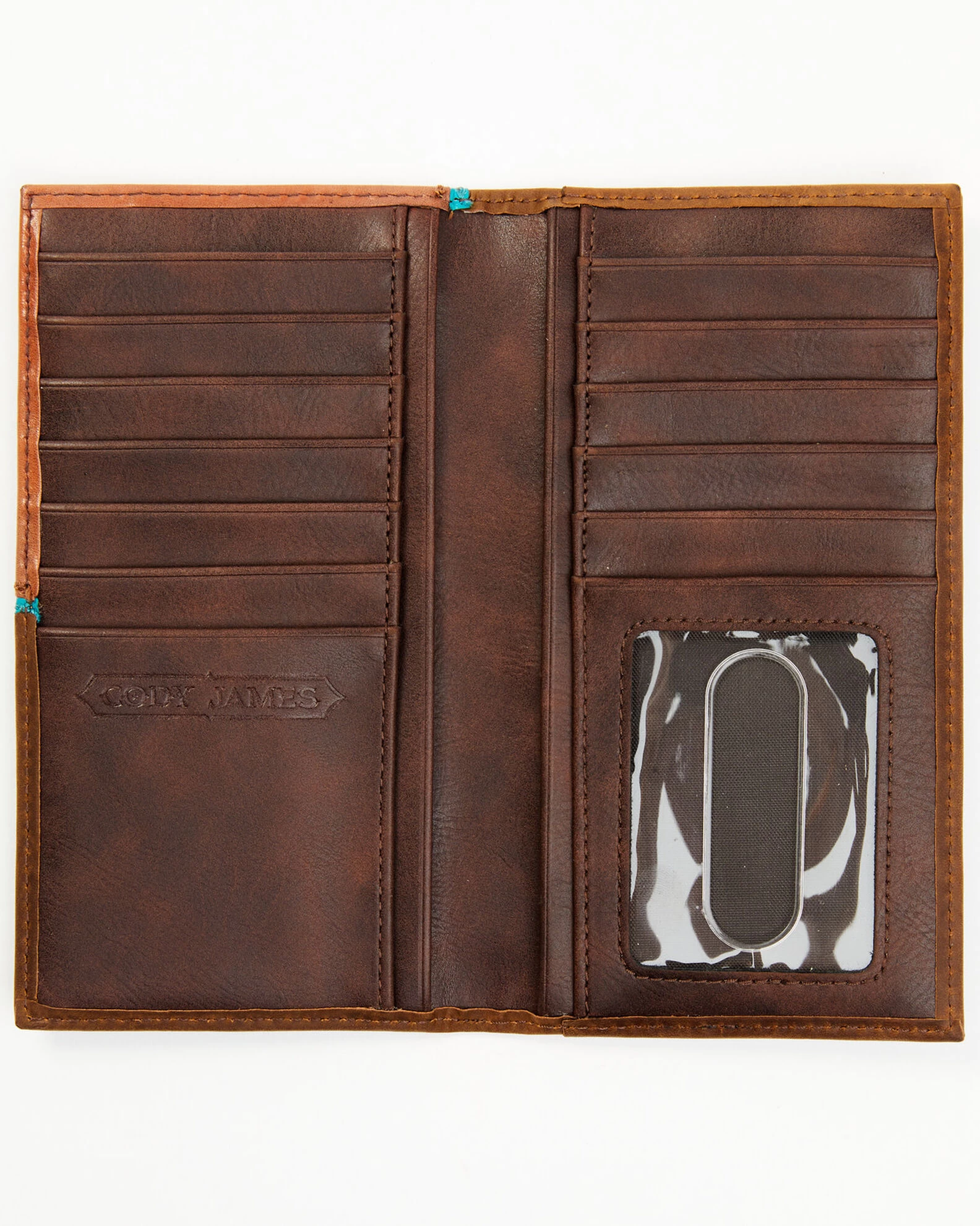 Cody James Men’s Turquoise Underlay & Brown Tooled Rodeo Wallet