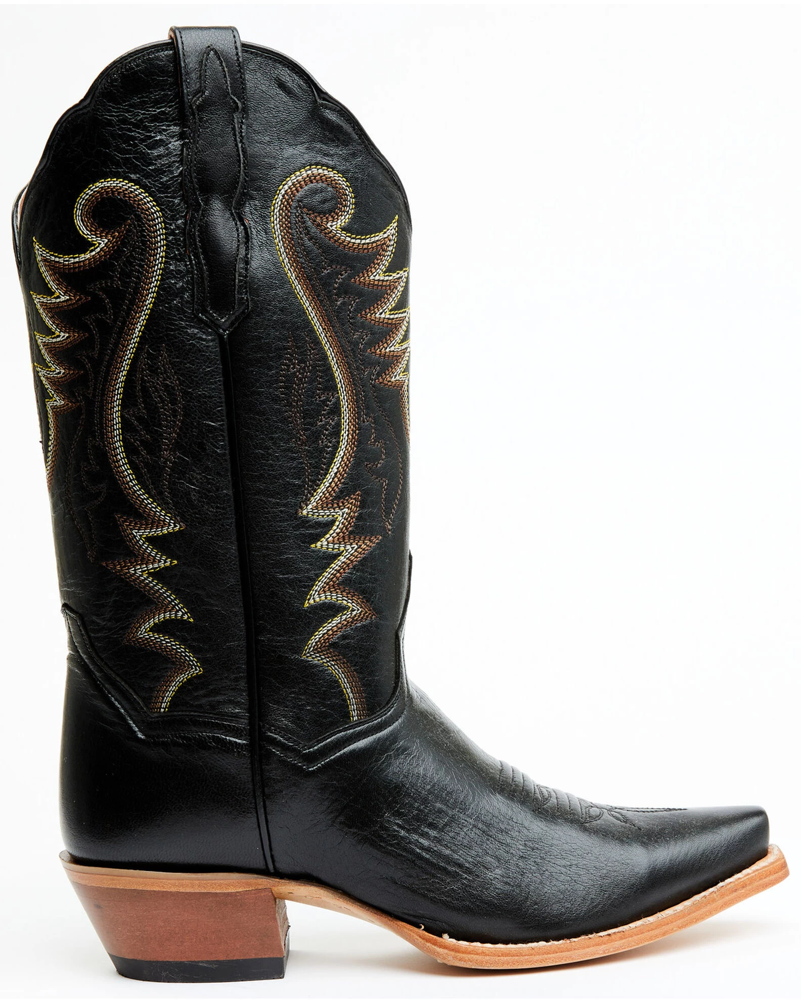 - Scalloped collar with embroidered western pattern on shaft