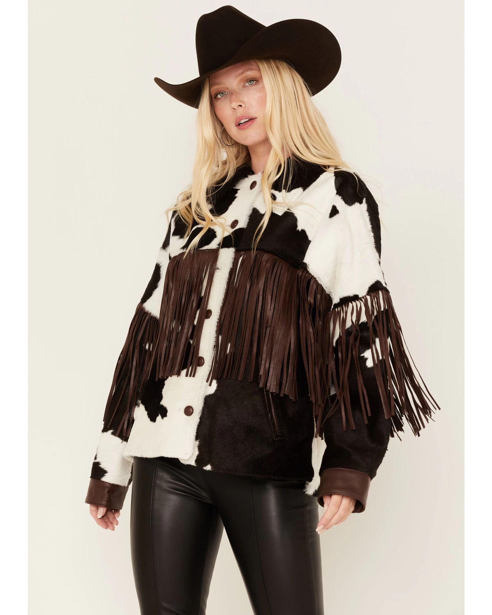DANCASSAB Women’s Taylor Hair-On Hide Fringe Jacket
