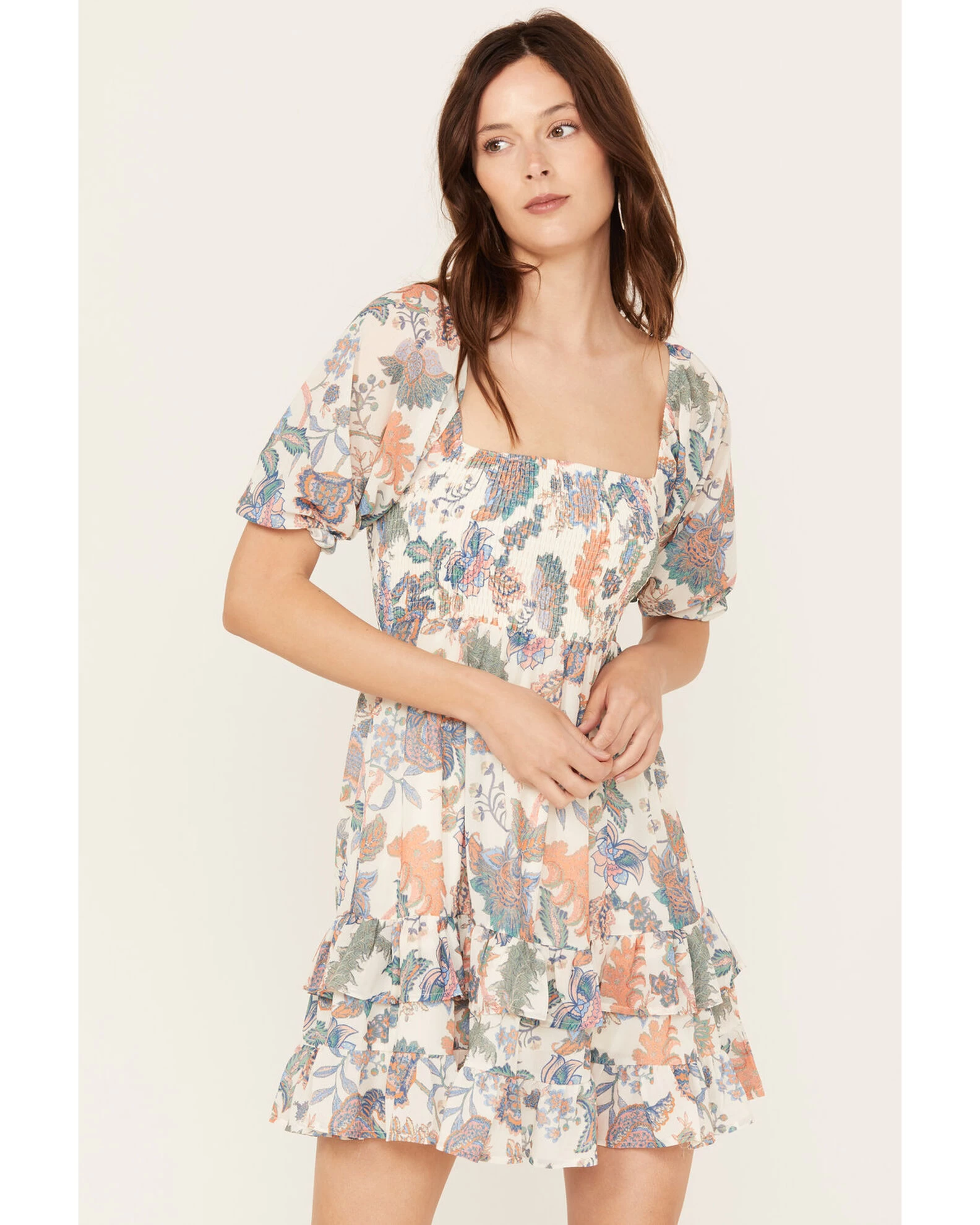 Flying Tomato Women’s Floral Smocked Short Sleeve Mini Dress