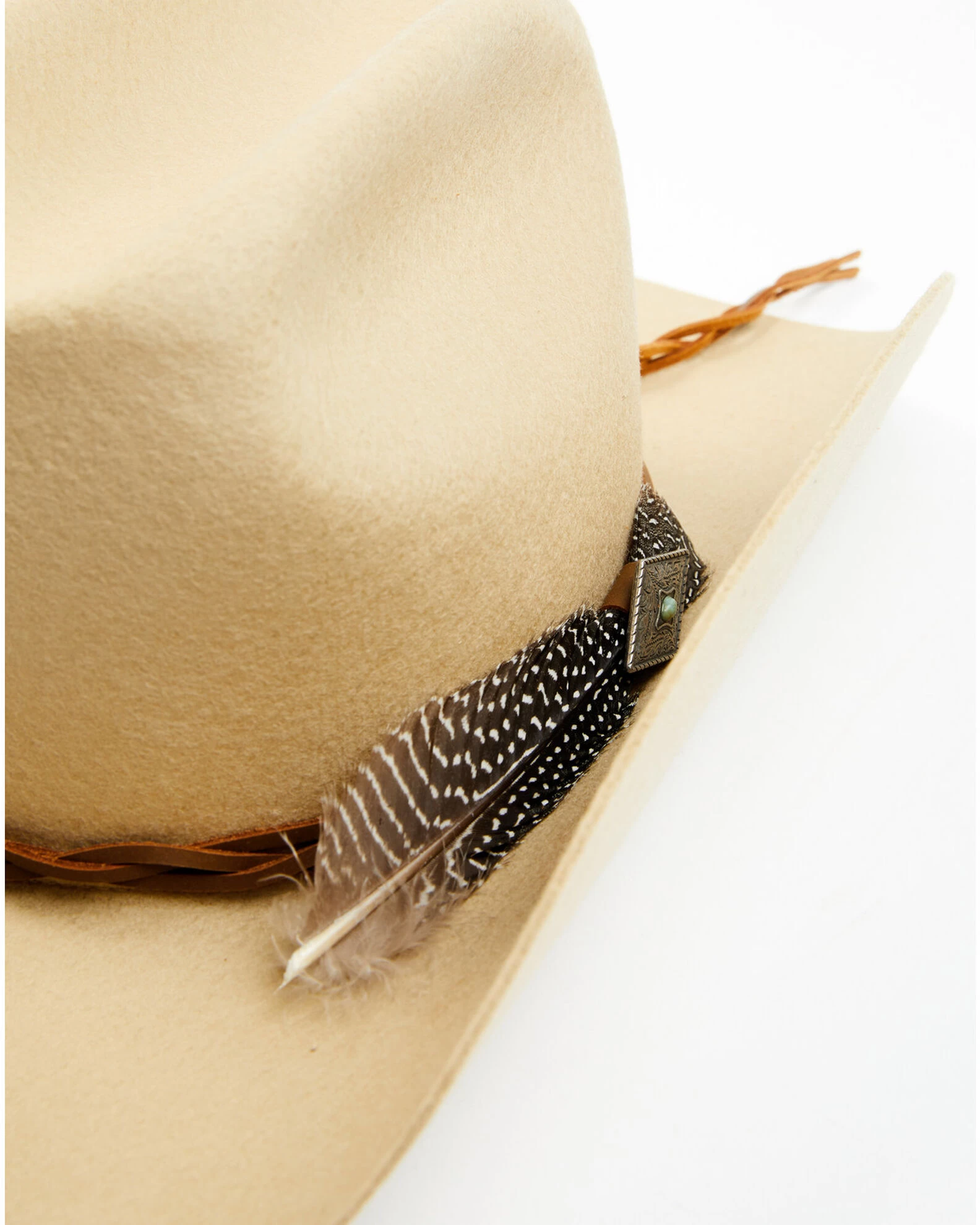 - Brown braided suede hat band