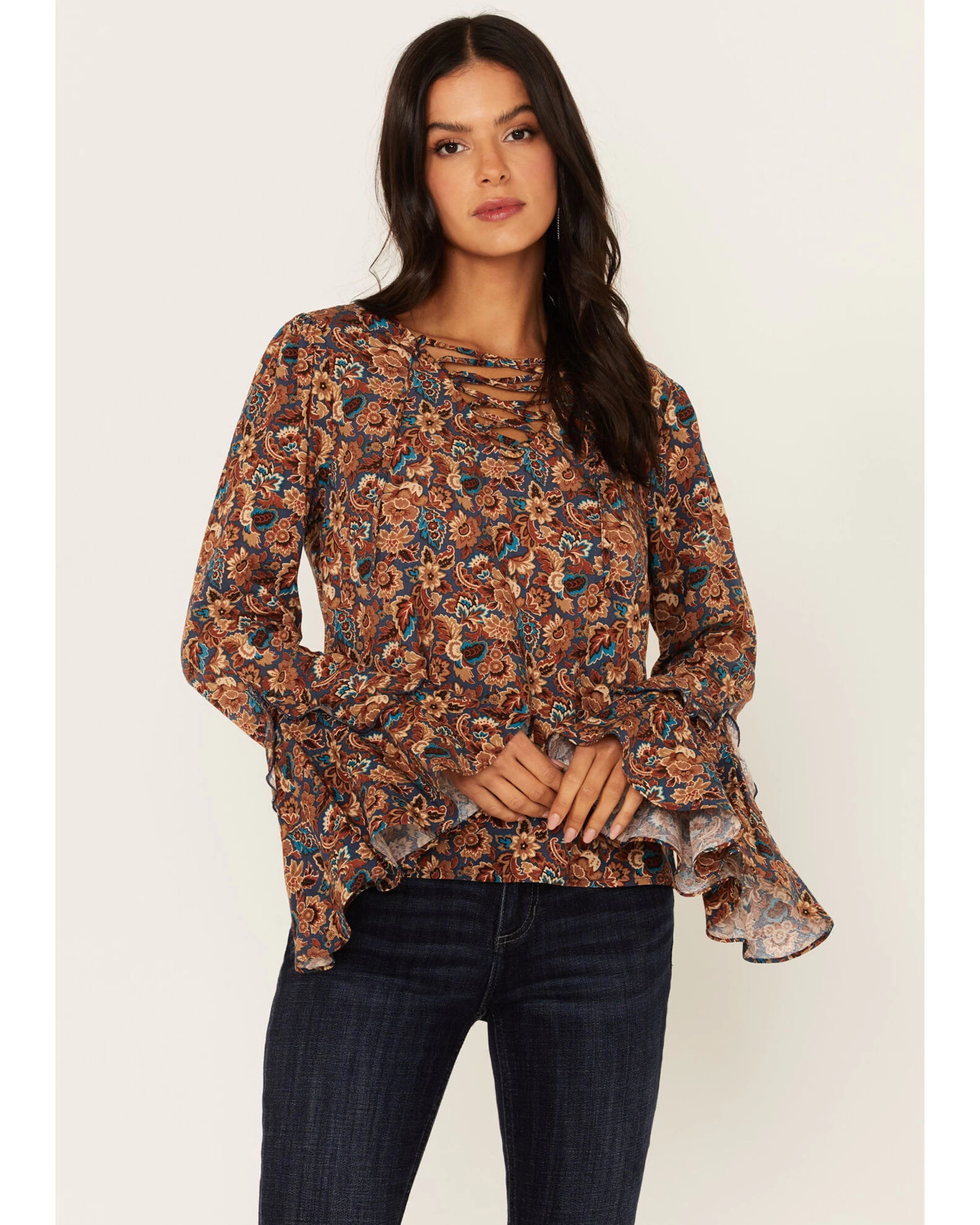 Idyllwind Women’s Rouge Paisley Print Lace-Up Top