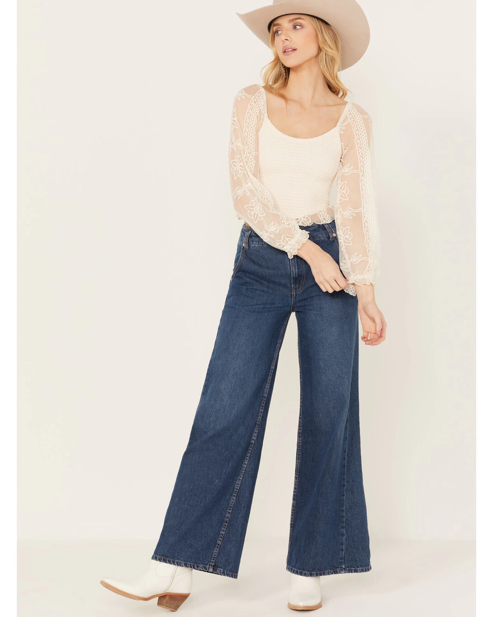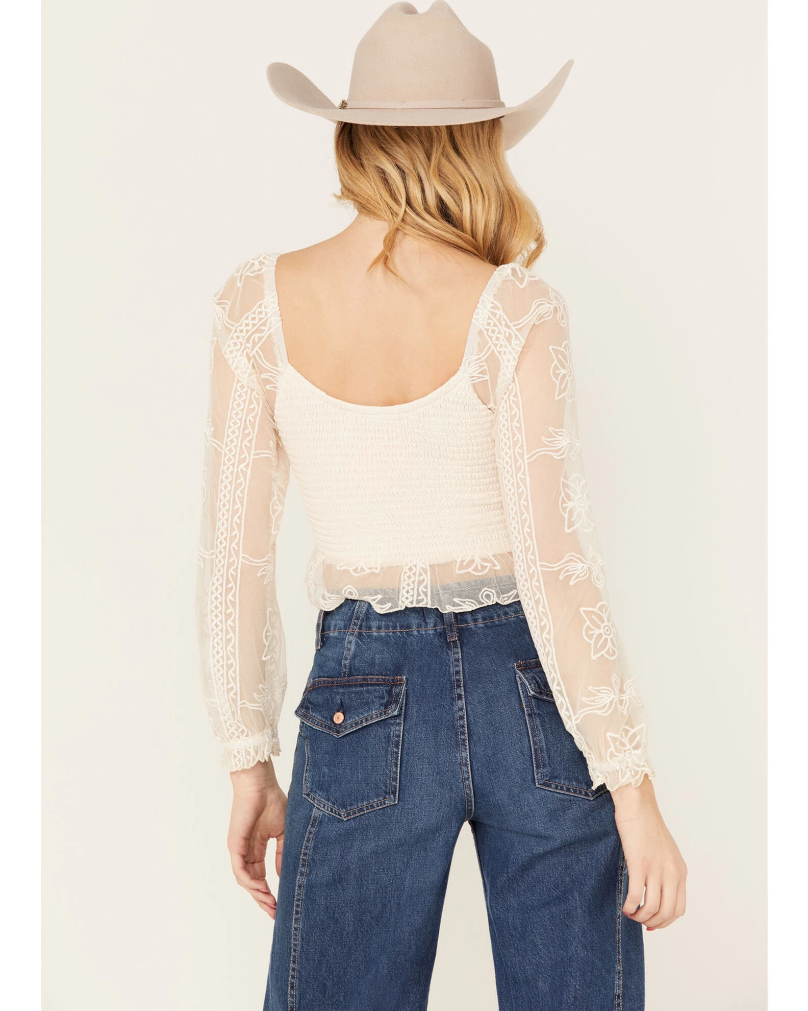 Jolt Women’s Lace Smocked Long Sleeve Top