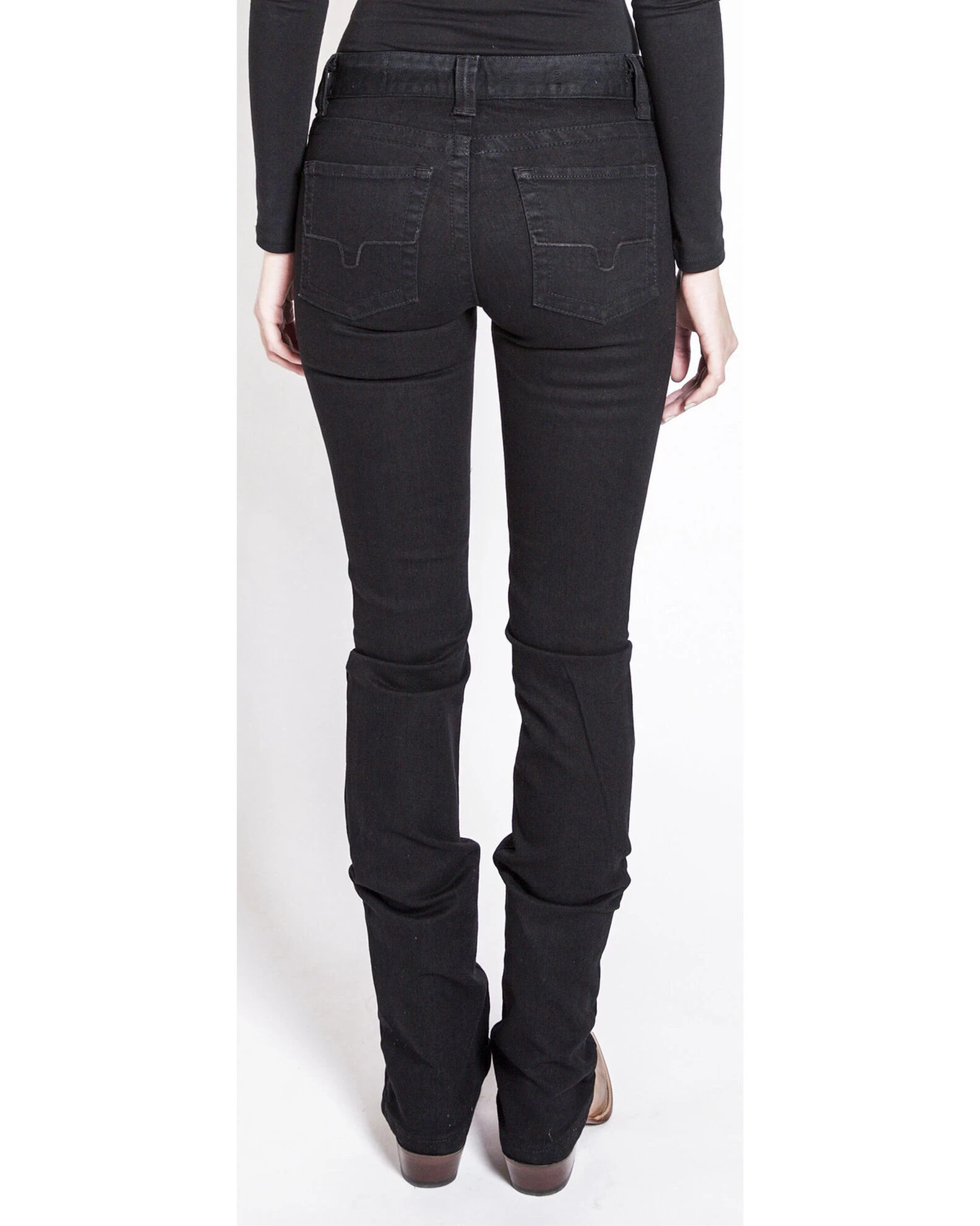 The Kimes Ranch Betty jean is made only with the best denim. The tri-blend technology allows for fit and comfort while holding its shape. The resin wash helps maintain a true black color keeping them around for years to come. The Betty sits mid rise and is fitted in the upper thigh and knee. Tuck these boots in or wear them over your cowgirl boots. Either way you will look great and feel comfortable.