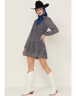 Lush Women’s Floral Long Sleeve Smocked Mini Dress