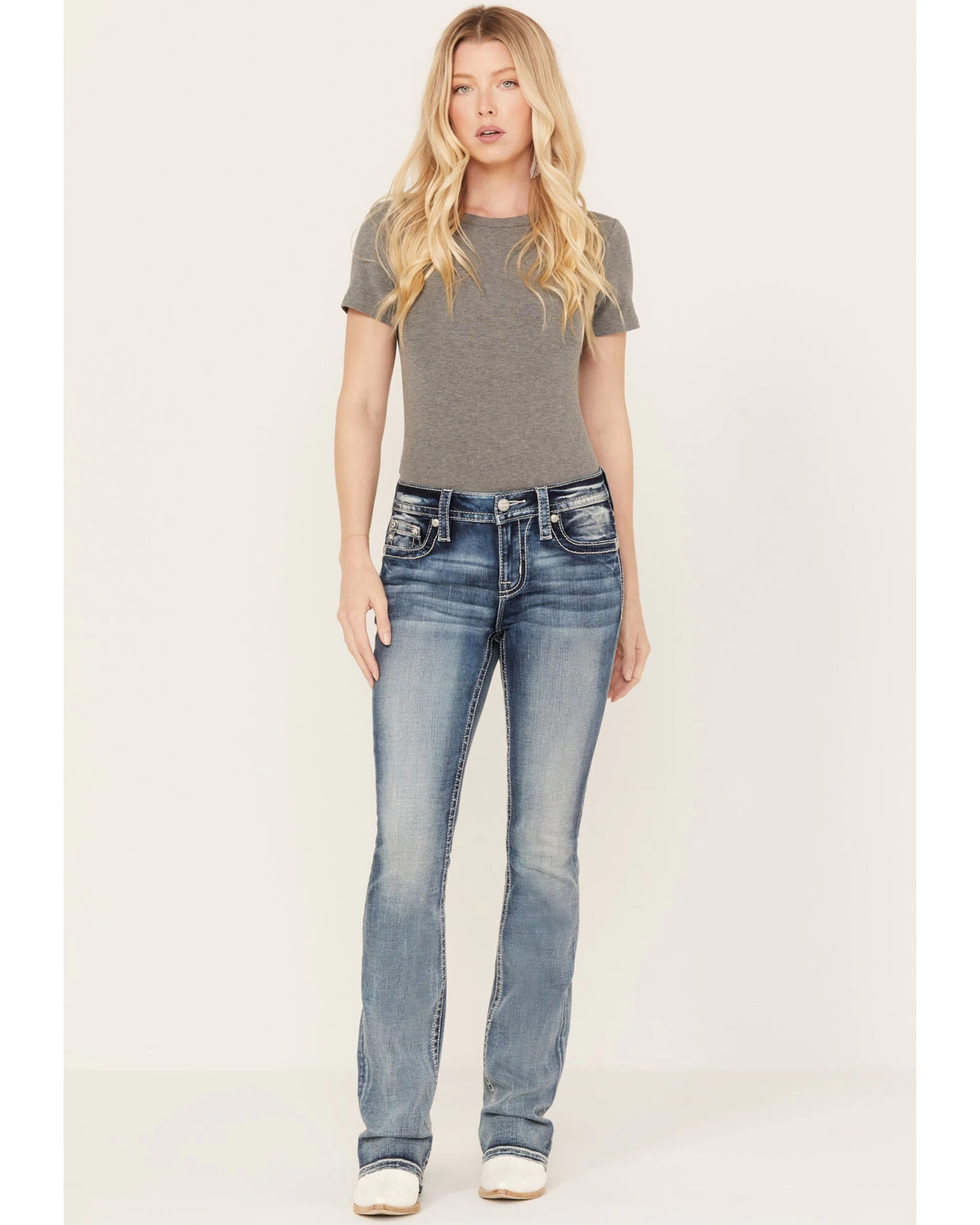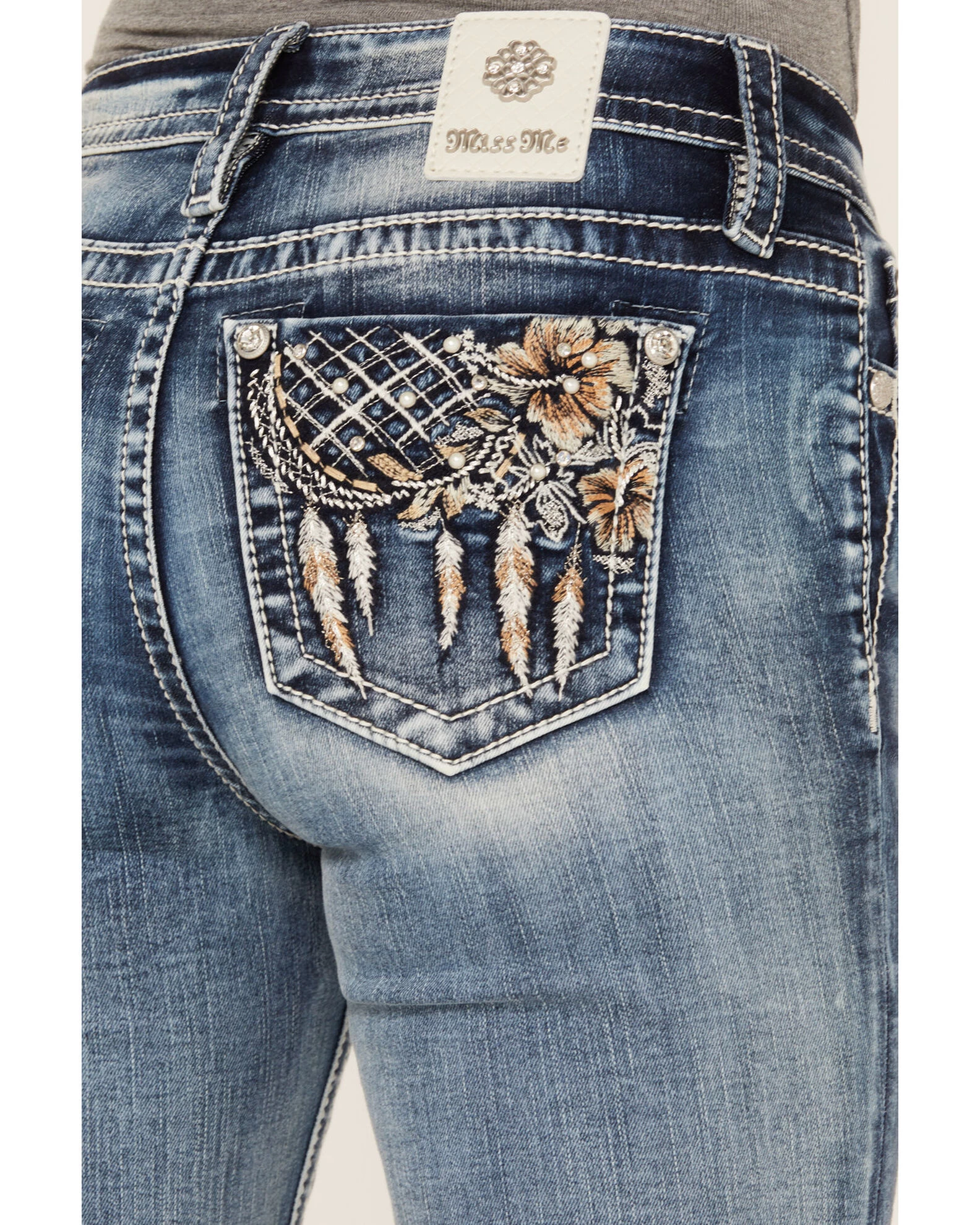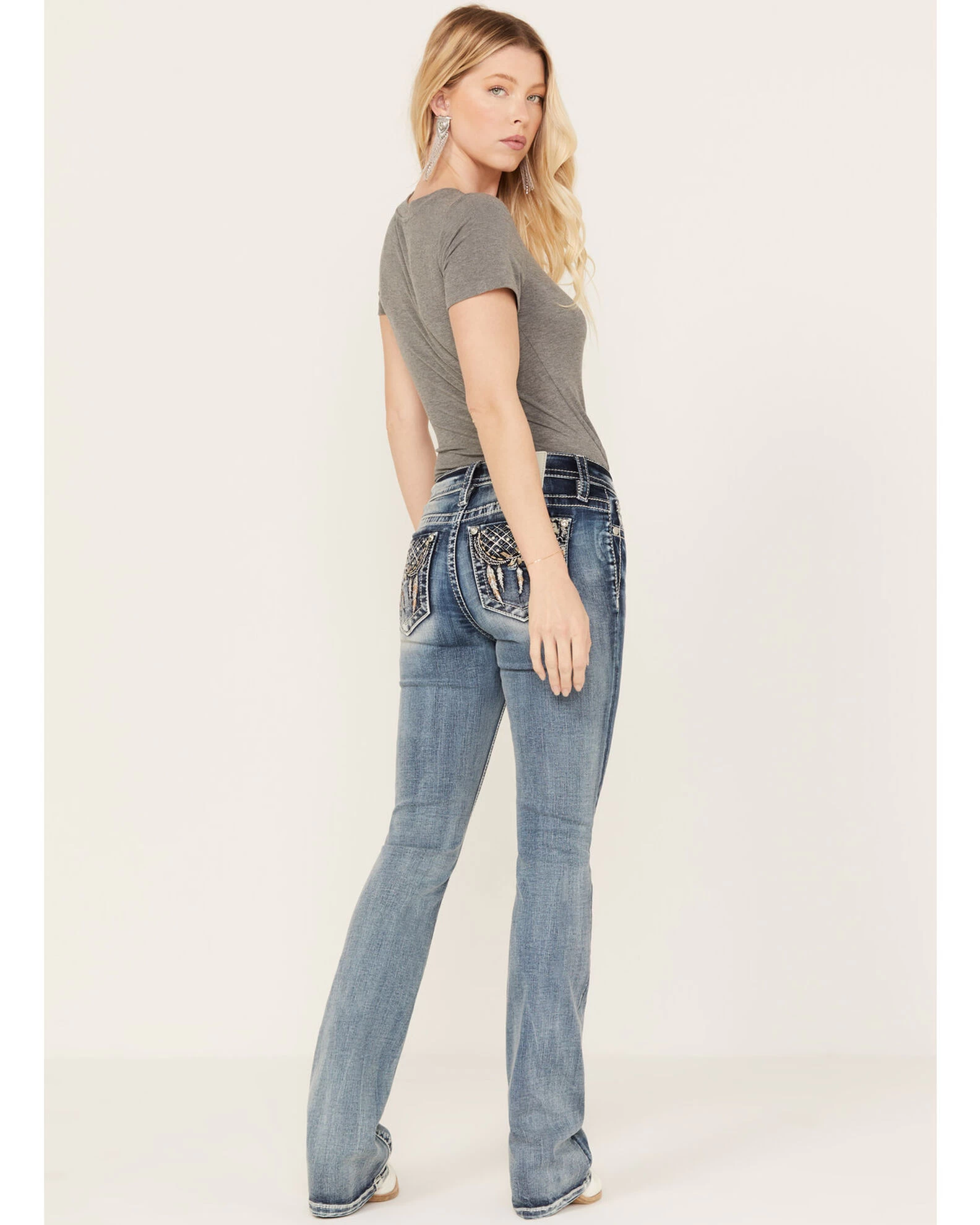 Miss Me Women’s Dark Wash Mid Rise Non-Flap Dream Catcher Bootcut Jeans
