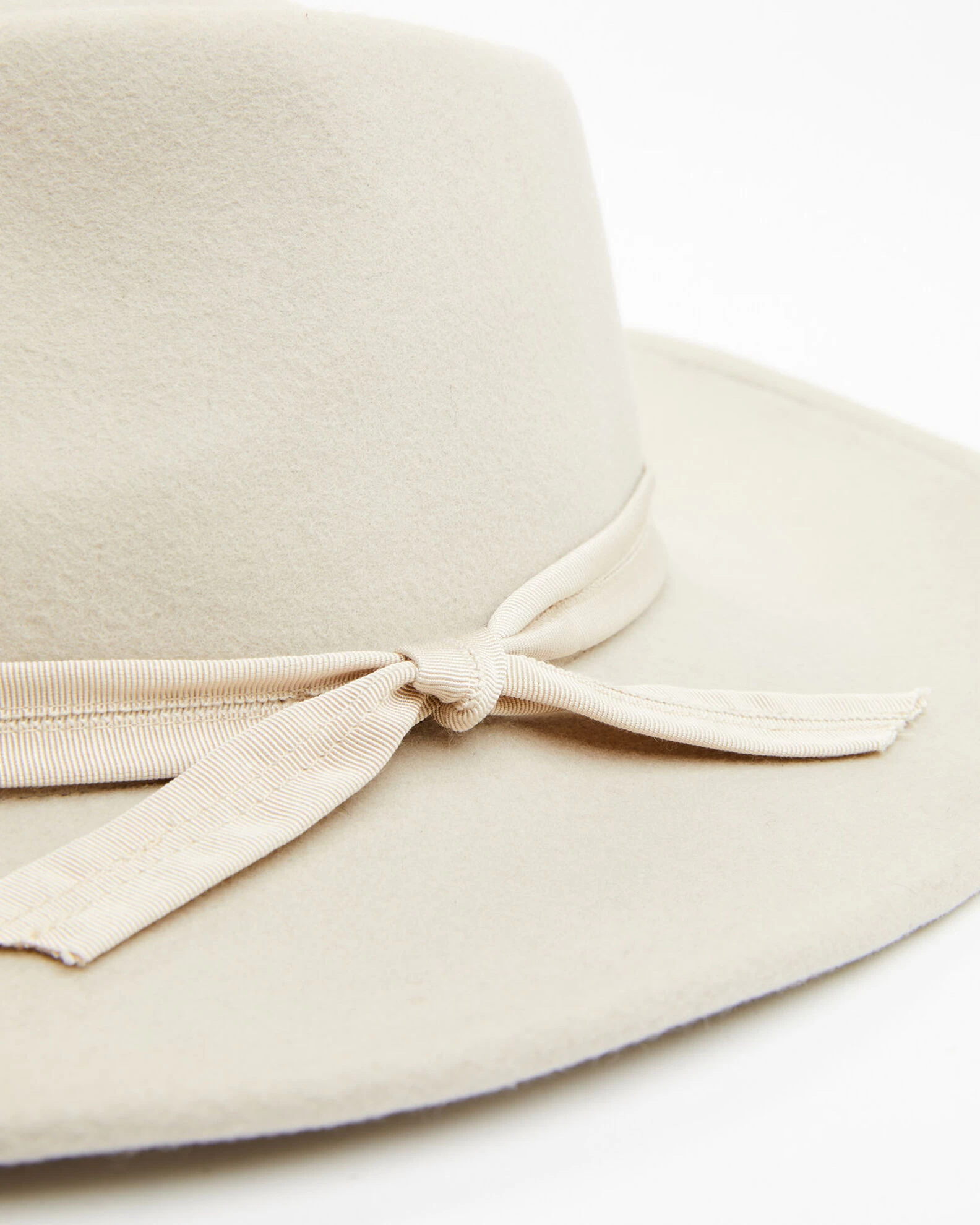 - Matching ribbon stitched trim and tie hatband
