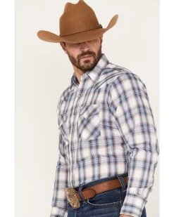 Ely Walker Men’s Plaid Print Long Sleeve Pearl Snap Western Shirt