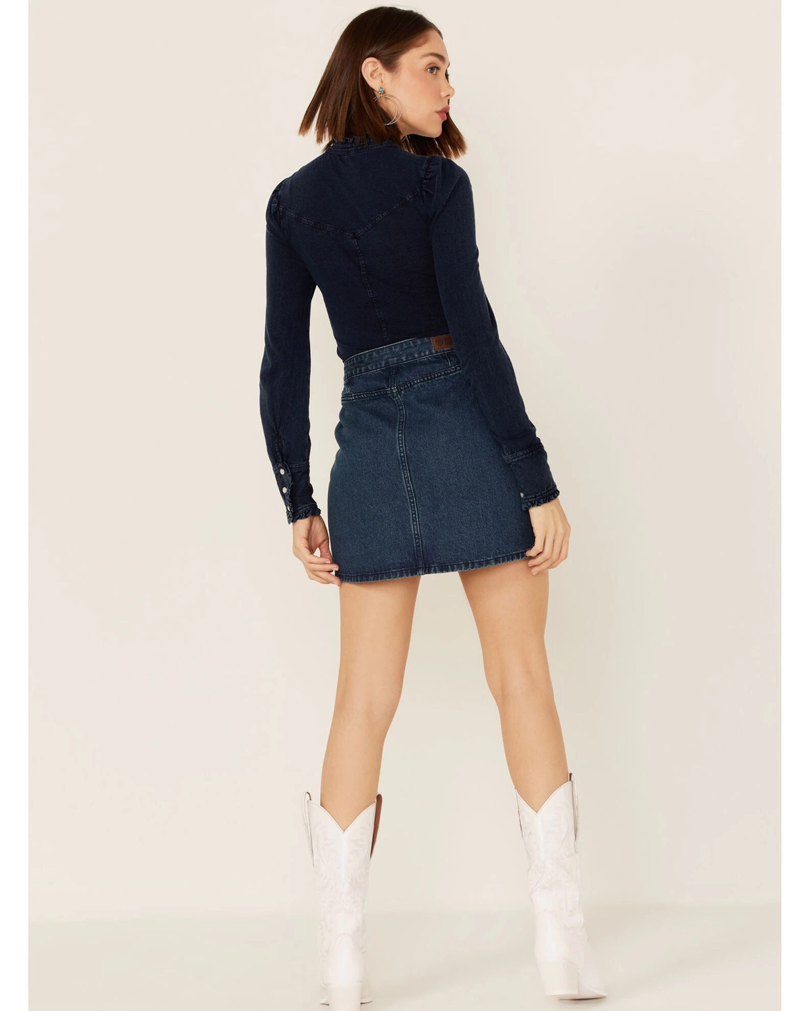 Rock & Roll Denim Women’s Dark Wash Studded Belted Western Denim Mini Skirt