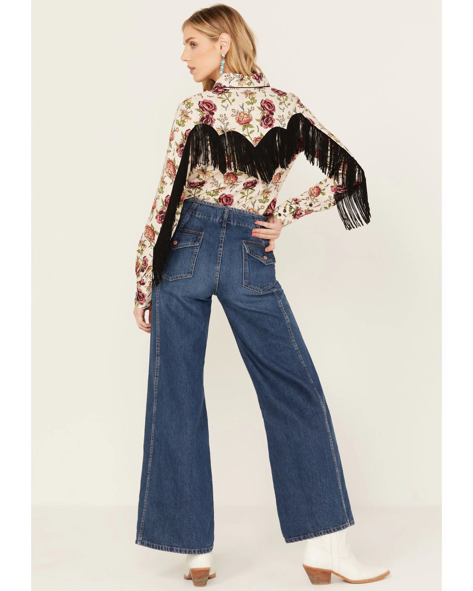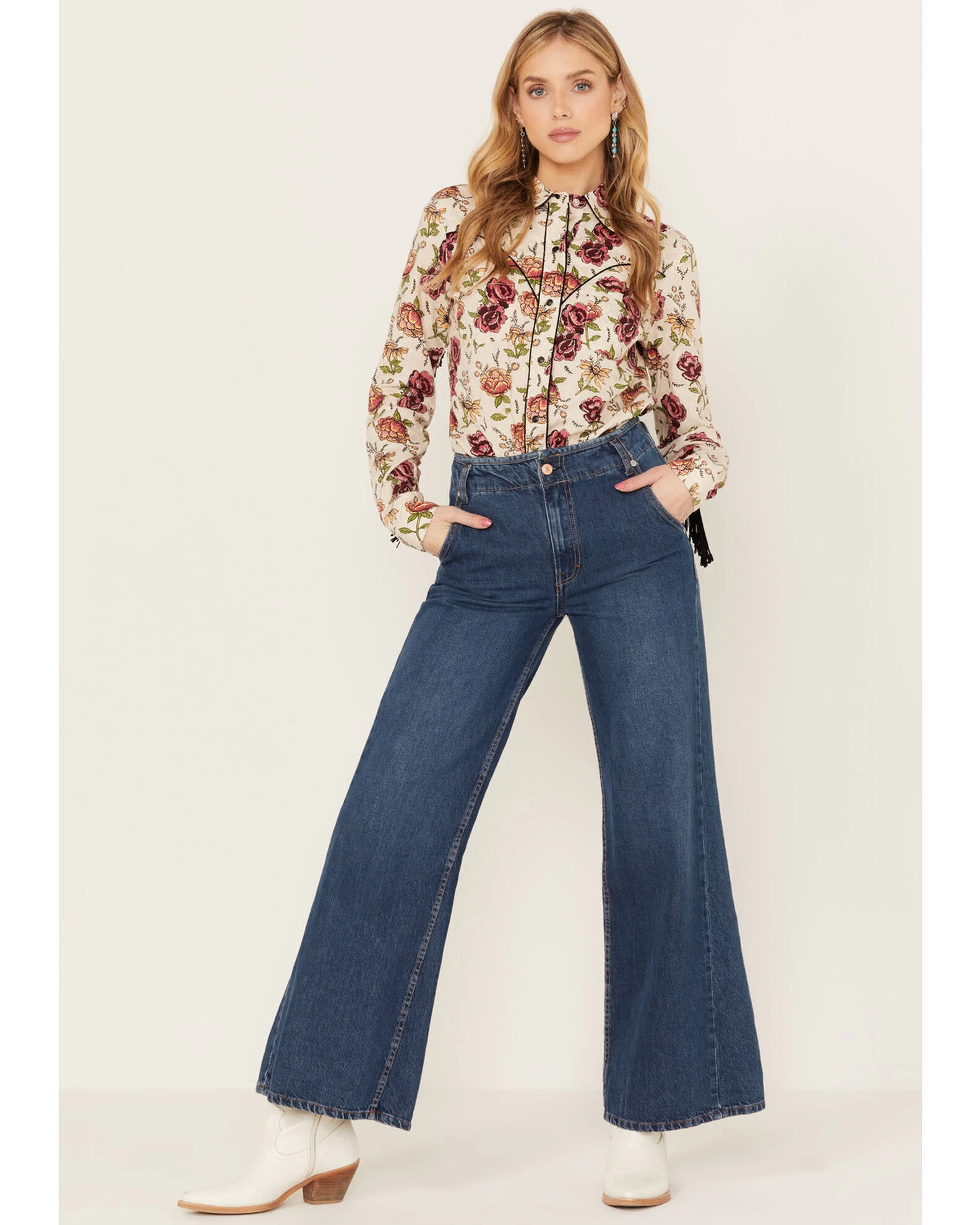 Rock & Roll Denim Women’s Fringe Floral Long Sleeve Western Shirt