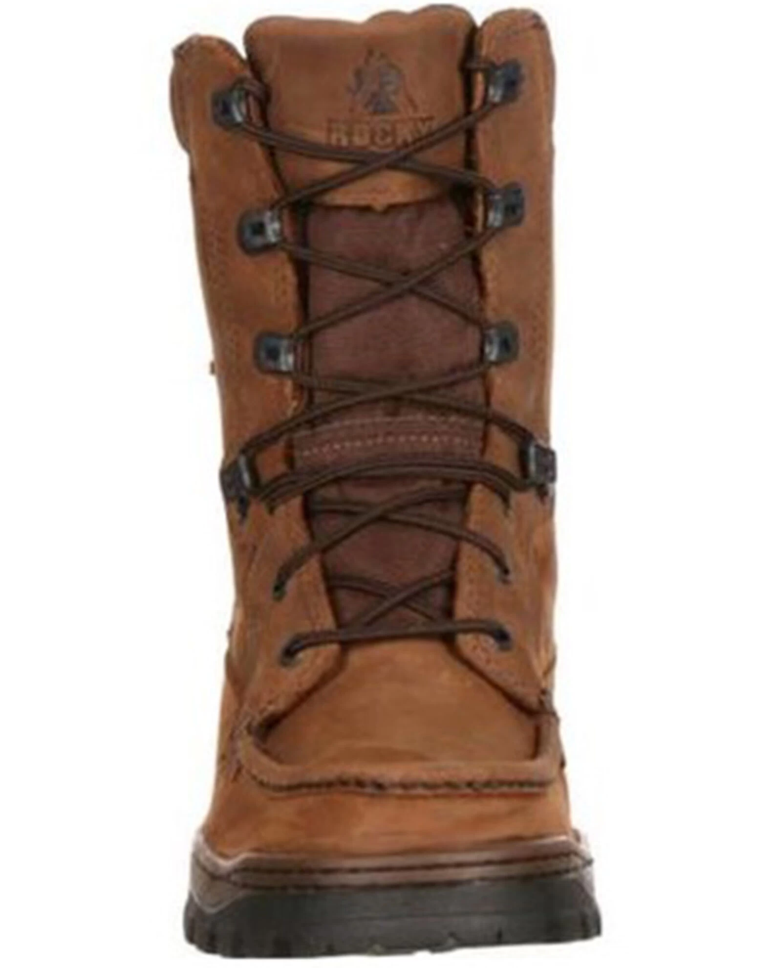 Rocky’s men’s Outback Boots are built to last on those long hikes and expeditions. And with the moc toe design, you’ll be hiking in style as well. With the full-grain leather that will mold to your shape with continual wear, and the airport cushion footbed, these boots were made to give you lasting comfort that won’t give out by day’s end. The goretex waterproof liner will keep your feet dry in almost any condition.
