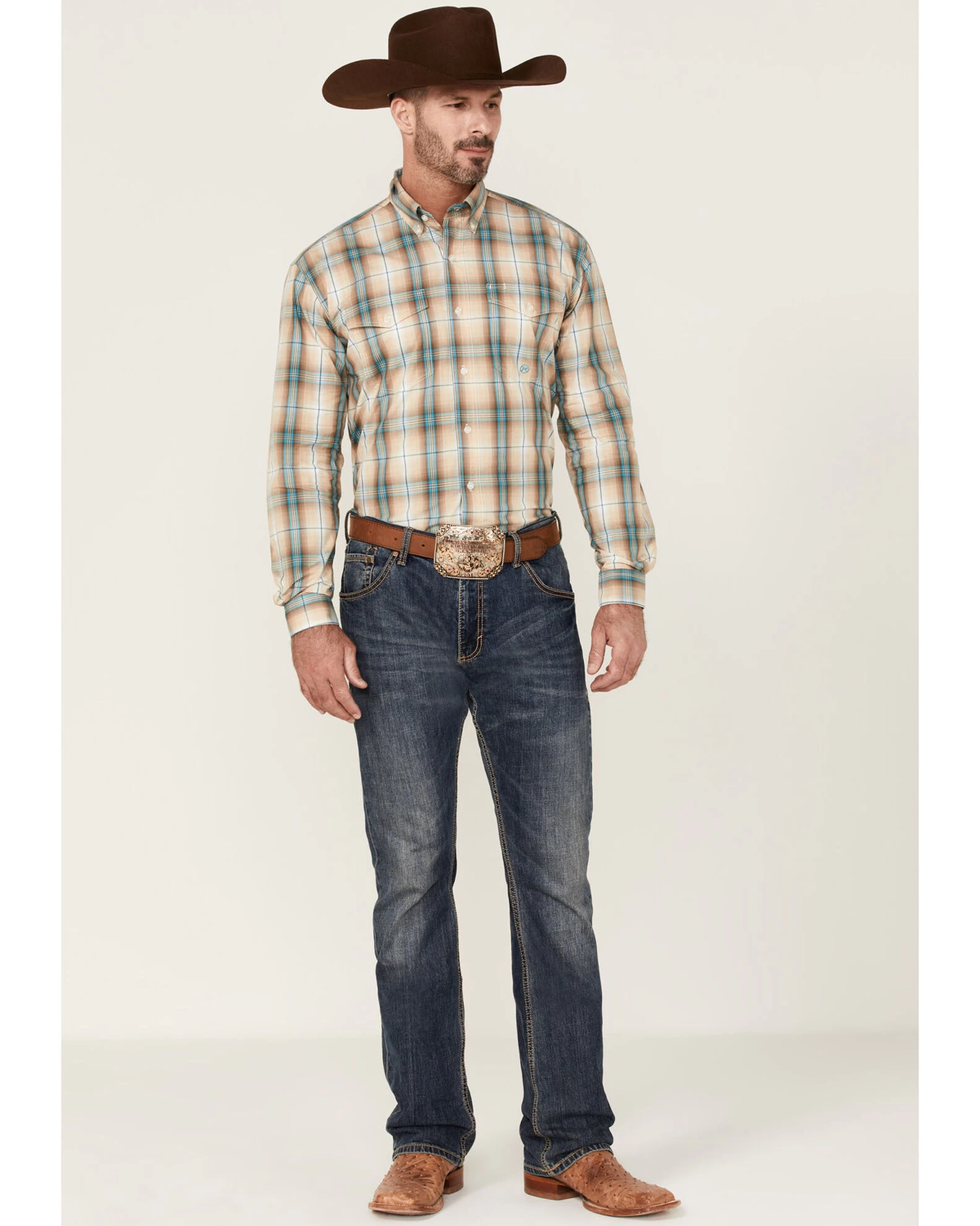 Roper Men’s Saddle Large Plaid Print Long Sleeve Button Down Western Shirt