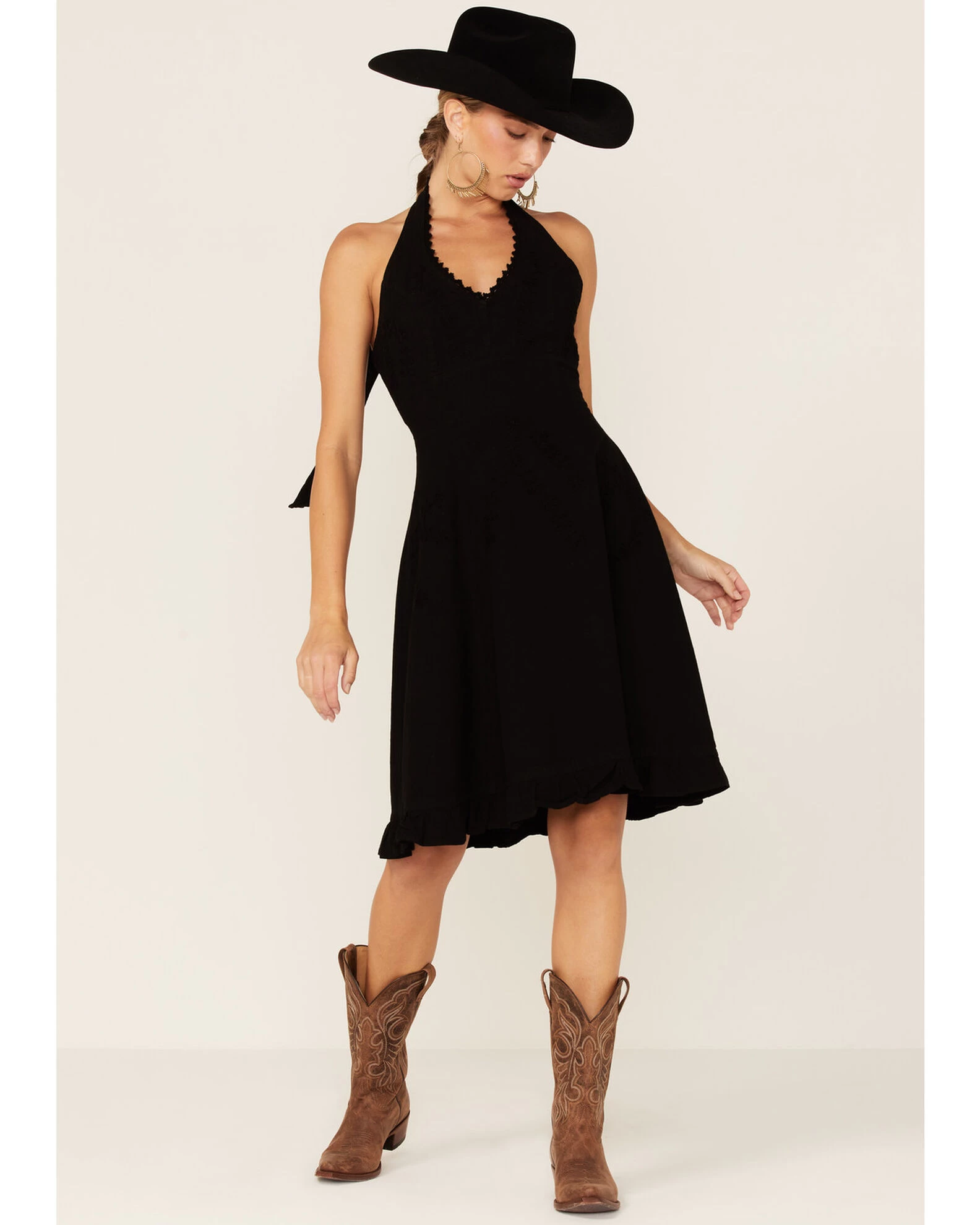 Scully dresses women with exquisite western taste and fashion-forward details. This women’s dress features halter top styling. Imported. Sizes: XS(0-2), S(4-6), M(8-10), L(12-14), XL(16-18), 2XL(20).