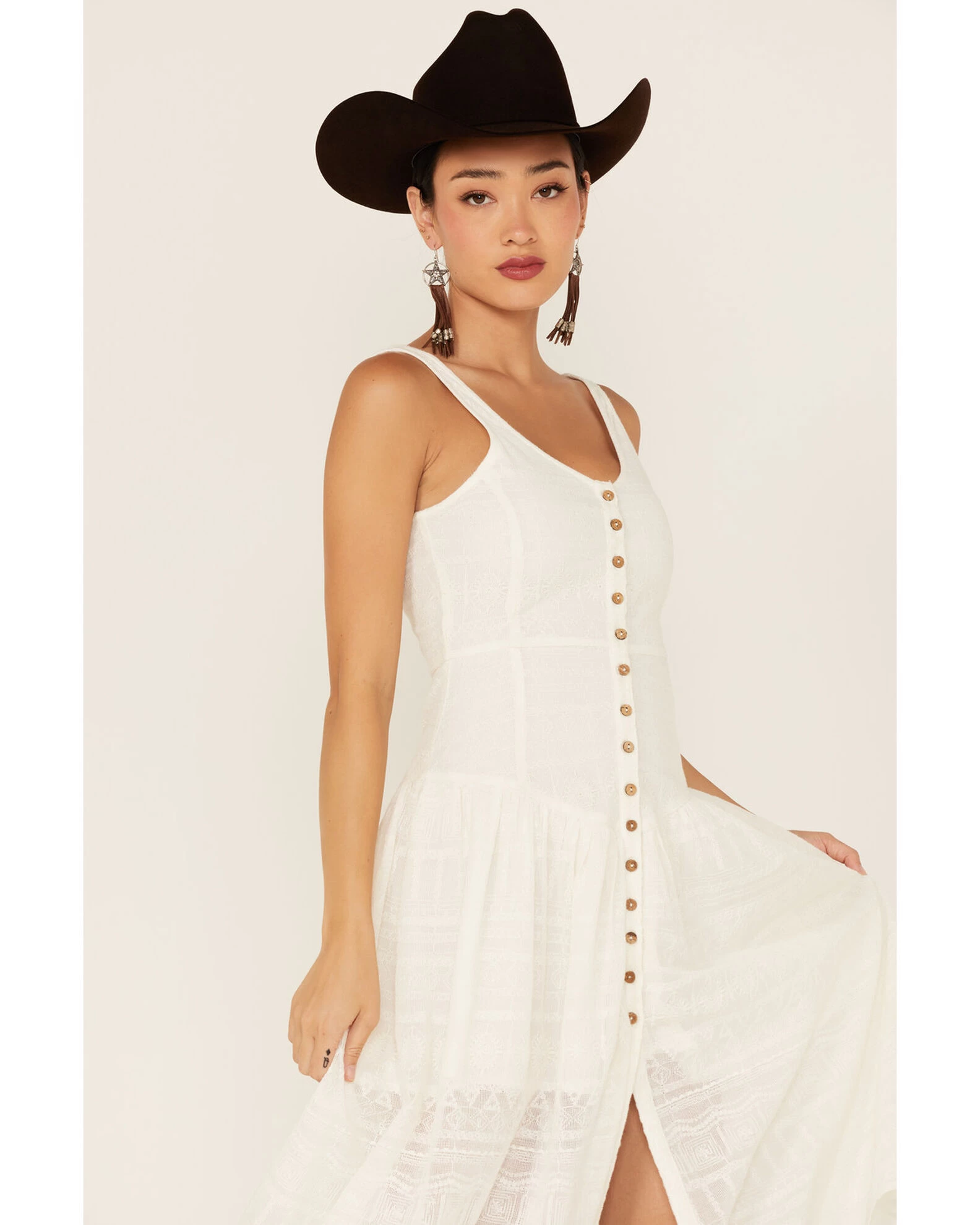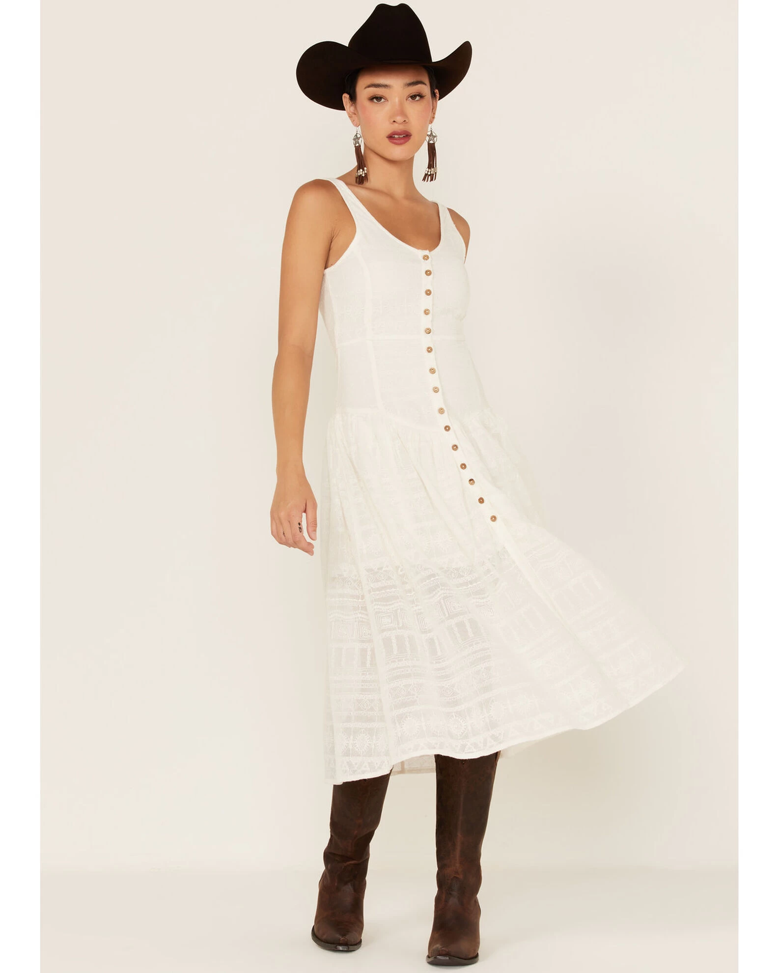 Shyanne Women’s Drop Waist Button Front Sleeveless Midi Dress
