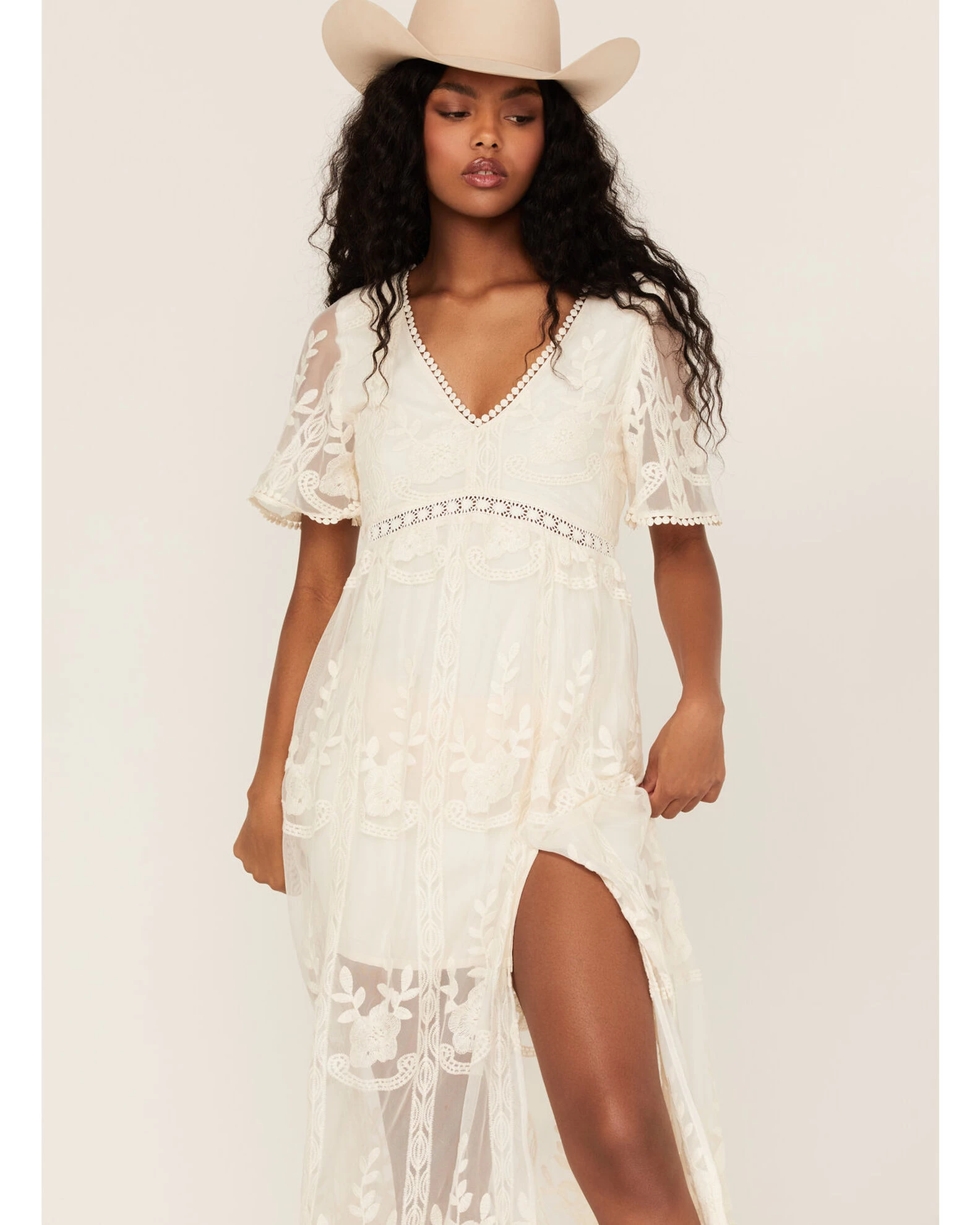 Shyanne Women’s Floral Lace Split Leg Maxi Dress
