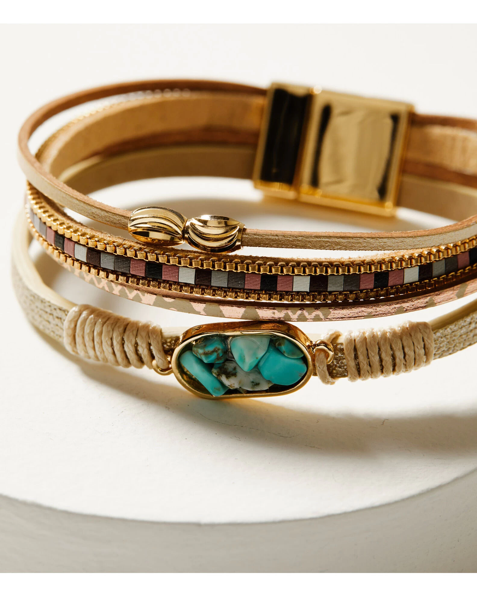 Shyanne Women’s Gold Multi-Strand Magnetic & Turquoise Cluster Bracelet