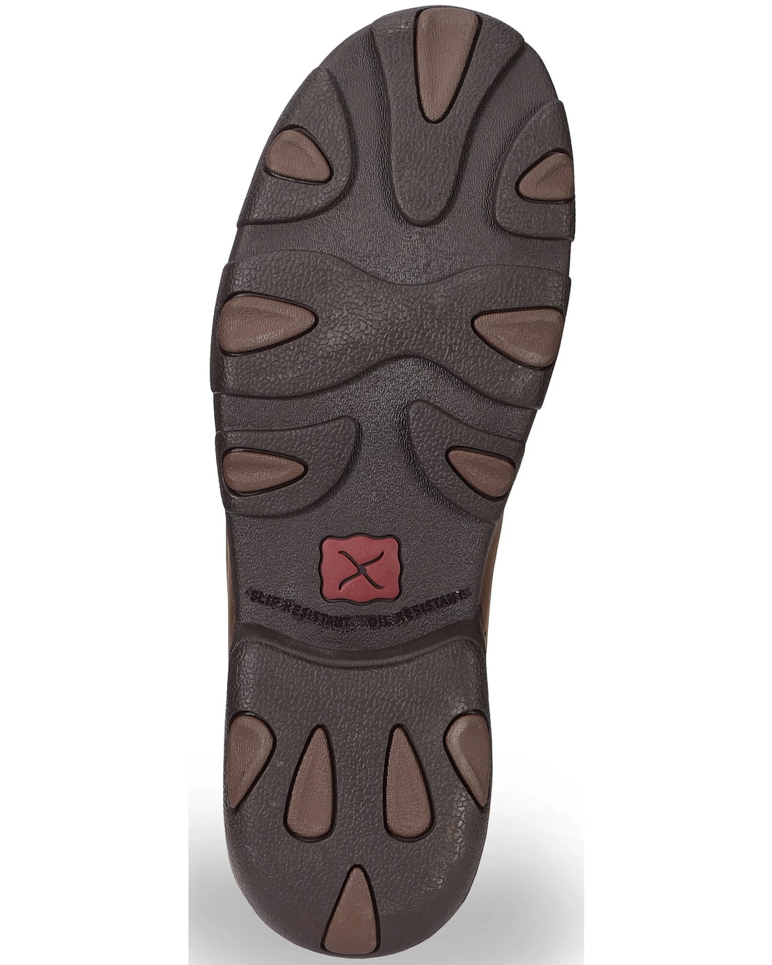 The Driving Moc Casual Work Shoes from Twisted X Boots are made from full-grain leather and they feature a soft mesh lining for ultimate comfort. These Work Shoes feature an oil and slip resistant rubber outsole, steel toe that meets ANSI standards 175/C75, and are electrical hazard rated to meet ASTM Standards F2413-11, F2892-11. These shoes are made to hold together and perform, so Twisted X is confident that this is the best overall casual work shoe package; you’ve got better things to worry about than feet. ?Keep them doggies smilin; just pull ?em on and leave em? on.?