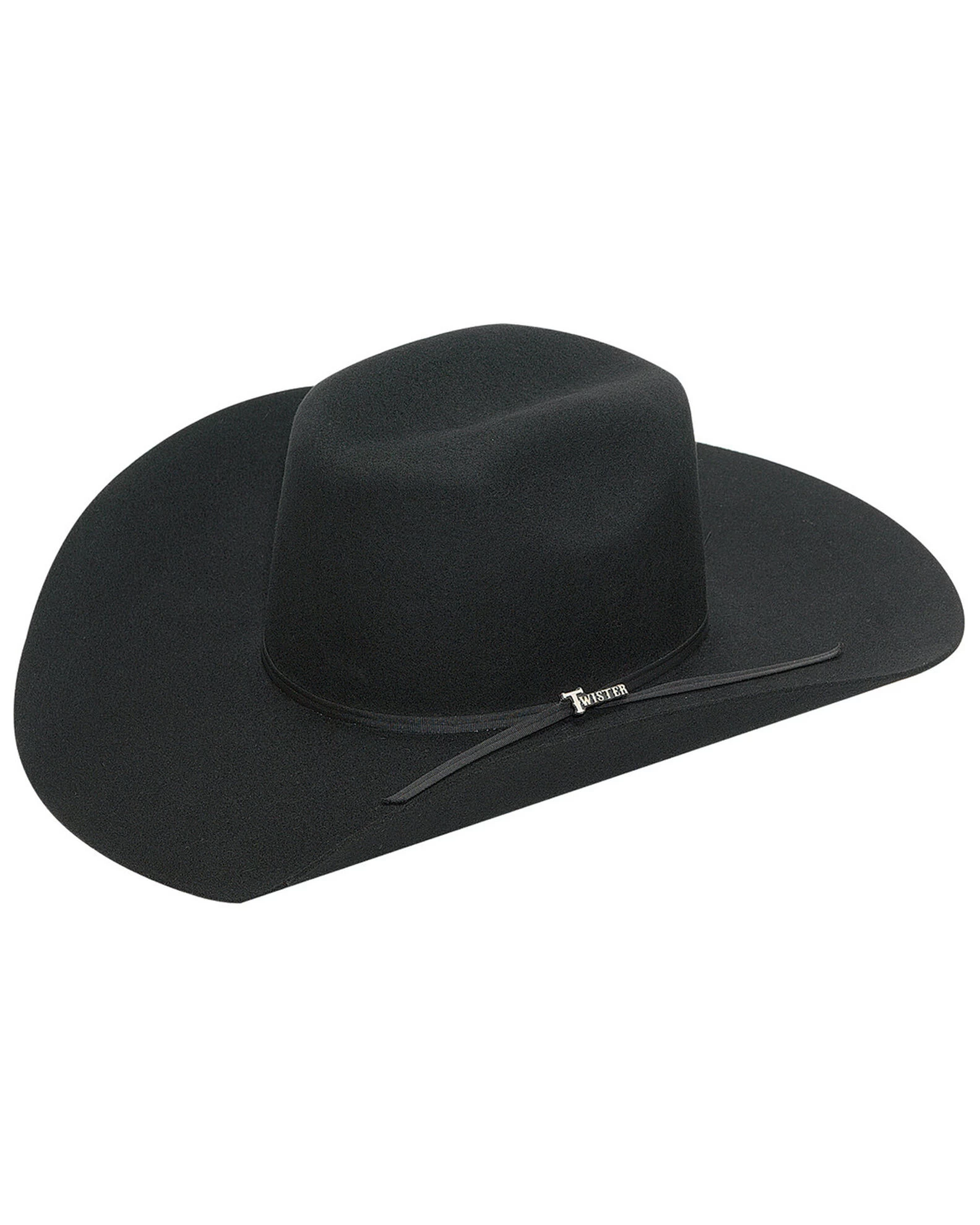 - Black hat band proudly displays a silver-tone Twister hat tack