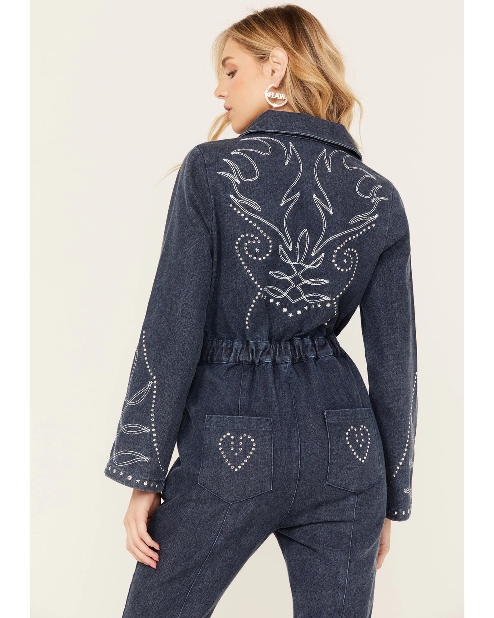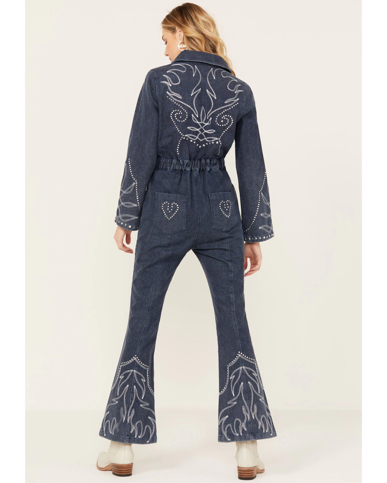 - Denim fabrication with western boot stitching throughout