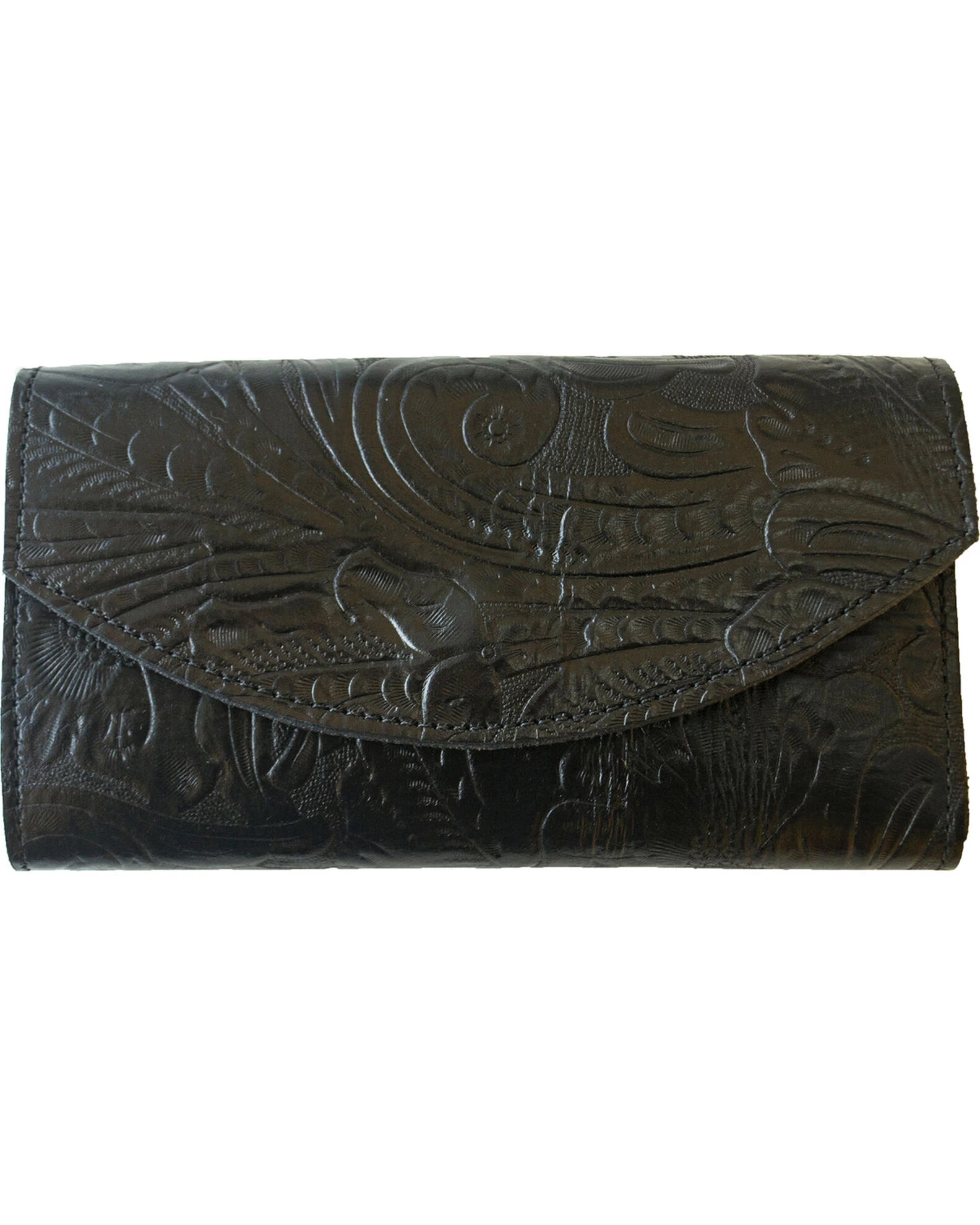 Show off your great taste when you pull out this leather wallet from Western Express. This wallet has leather construction with an allover tooled design. The snap closure will keep you valuables safe and sound through any event. You can carry this Western Express wallet in any purse or bag in your closet.