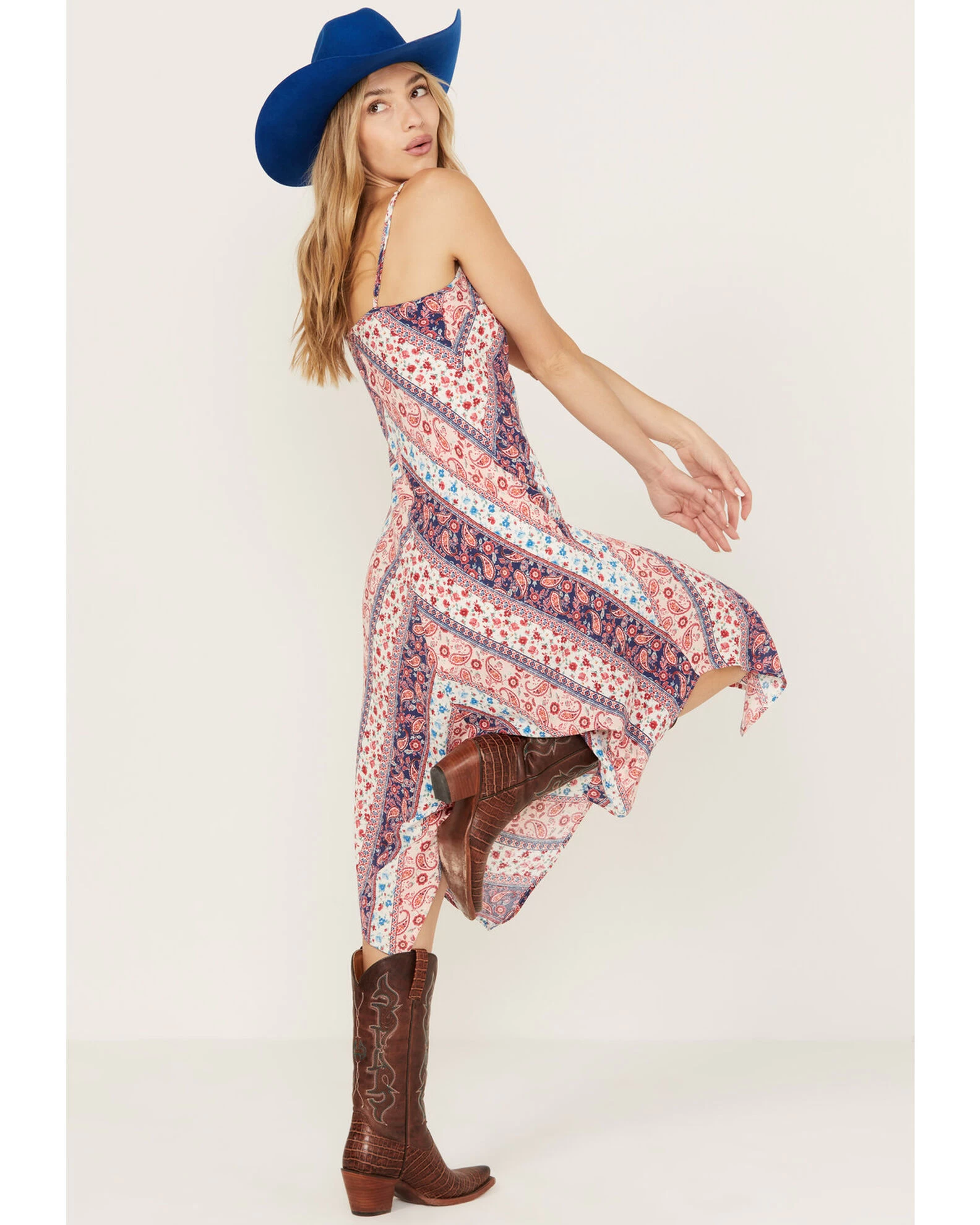 Wild Moss Women’s Multi Print Hanky Hem Midi Dress