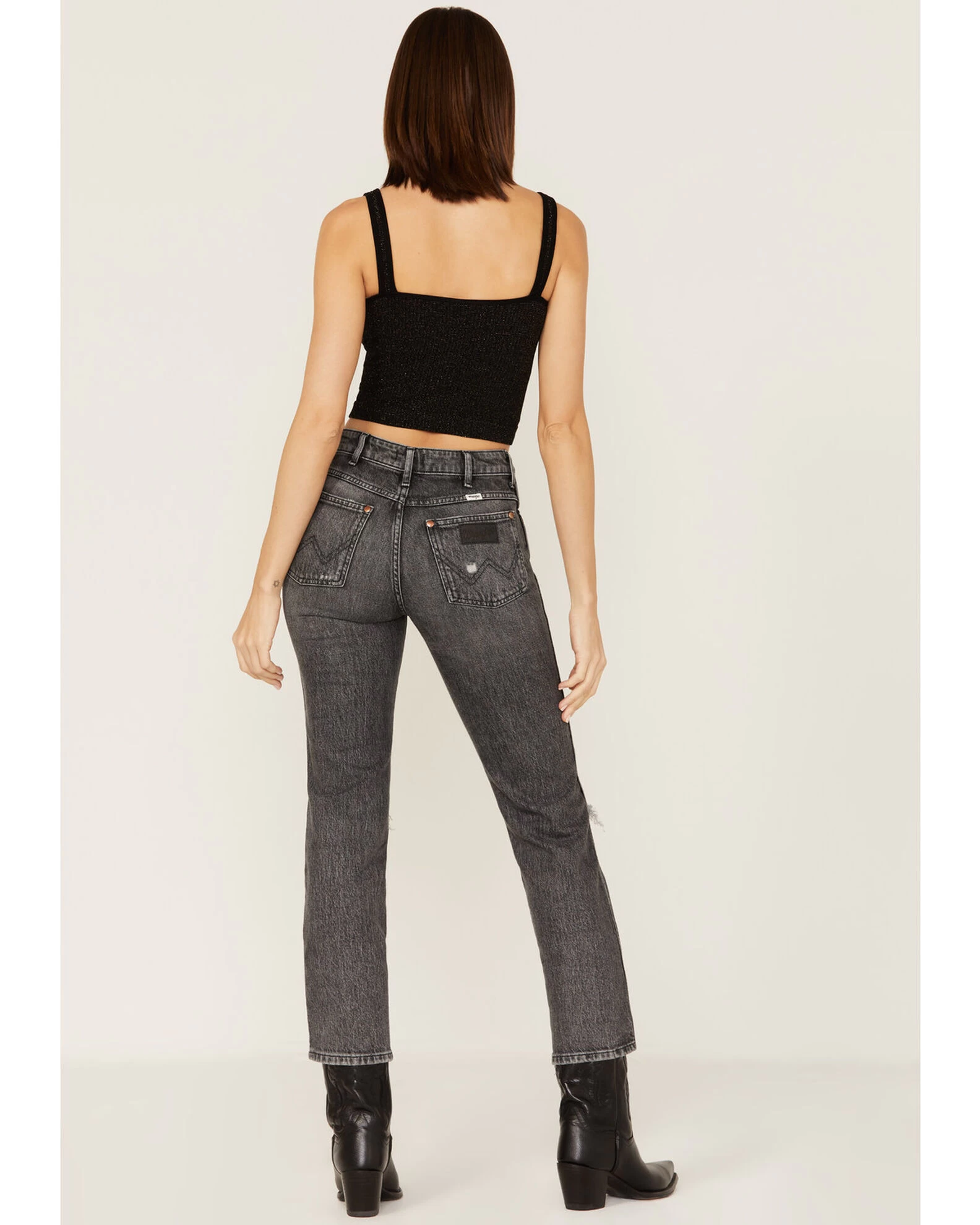 Be the first to review “Wrangler Women’s Dark Wash High Rise Distressed Wild West Straight Jeans” Cancel reply